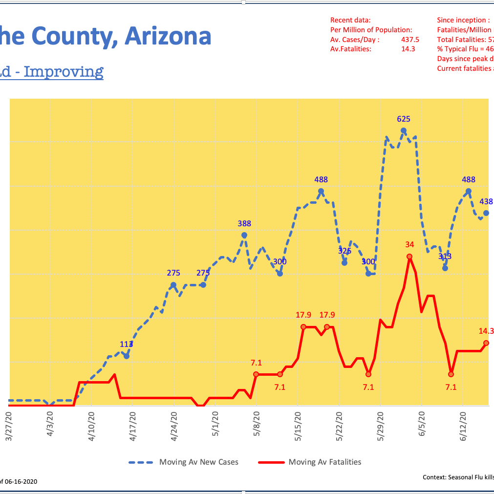 For the worst affected counties (Santa Cruz, Navajo, Yuma, Apache) – the level of infection and fatalities is even further out of control.