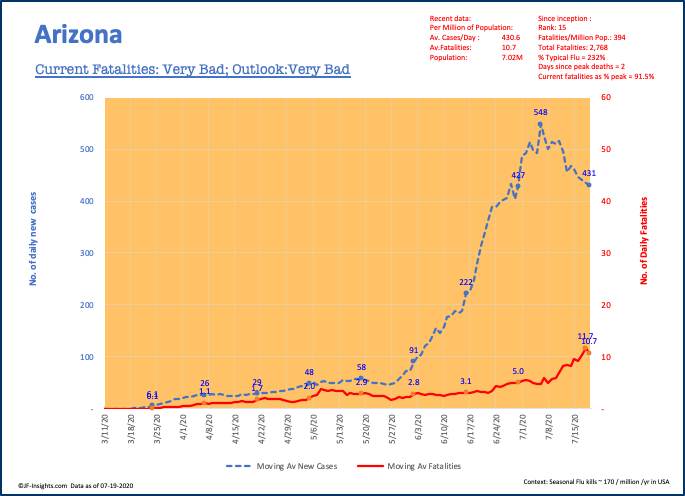 Will Arizona continue the progress on case reduction – and return to the levels before May? Time will tell. They have a very long way to fall to get back to normal and we soon face the prospect of school reopening.
