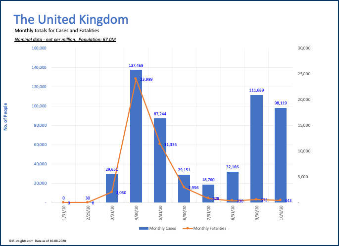 Check out the chart – in the month of September the UK had more cases than the prior 3 months combines. October is well on pace to exceed September – and likely a new record – exceeding April.