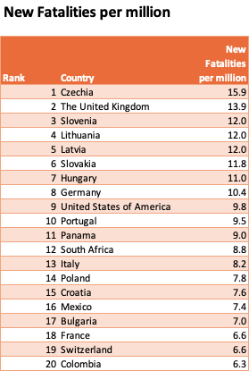 I’ve been so focused on the US for so long that I surprised myself when looking at the current global hotspots for the per capita fatalities over the past 7 days. Czechia is #1 and UK is #2. UK fatality rate is up 45% in the past week.
