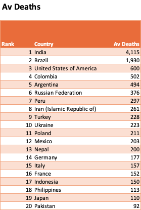 In today’s blog we take a quick look at the global picture for COVID. Once again South America has the highest rate per capita of new cases. One key point to note; many of the countries worst hit now are the poorest in the world. As you read this – spare a thought for those countries – and lets all try to do something to encourage international aid to support them.