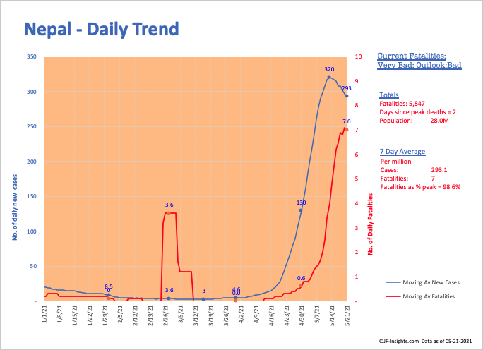 Nepal’s proximity to India is causing an explosion of cases there. Did you know GDP per capital is just $900 per year. Lets all spare a thought for Nepal – and pray that the country gets the aid it needs to protect its people.