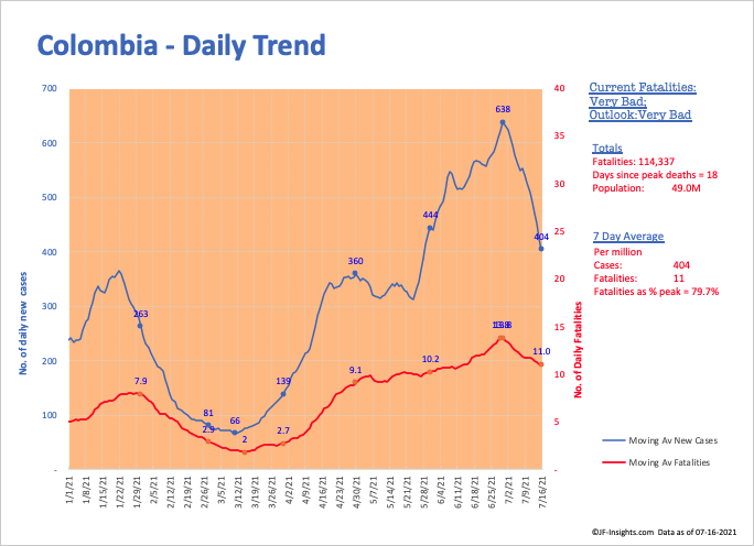 Columbia was almost in control in March – but fatality levels are very bad. While cases are reducing now… they are still very high.