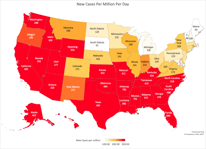And a look at the case burden across America leaves little hope for optimism in the short term. Delta is spreading rapidly across many states.
