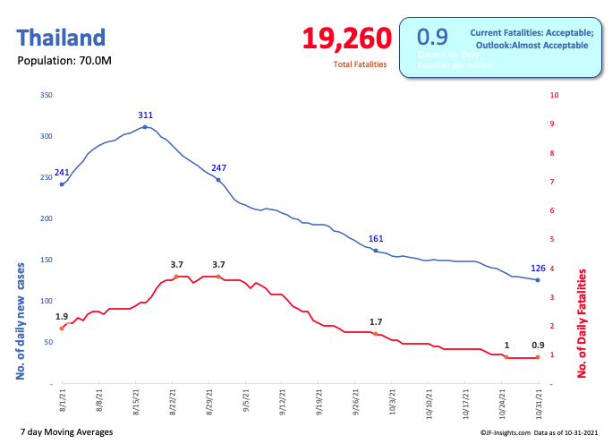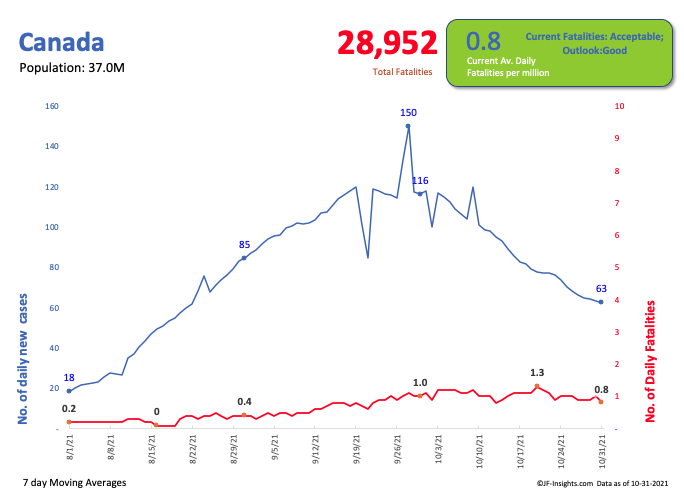 All data in this analysis is to end October 2021. Per capita we can see cases have fallen significant – but not fatalities