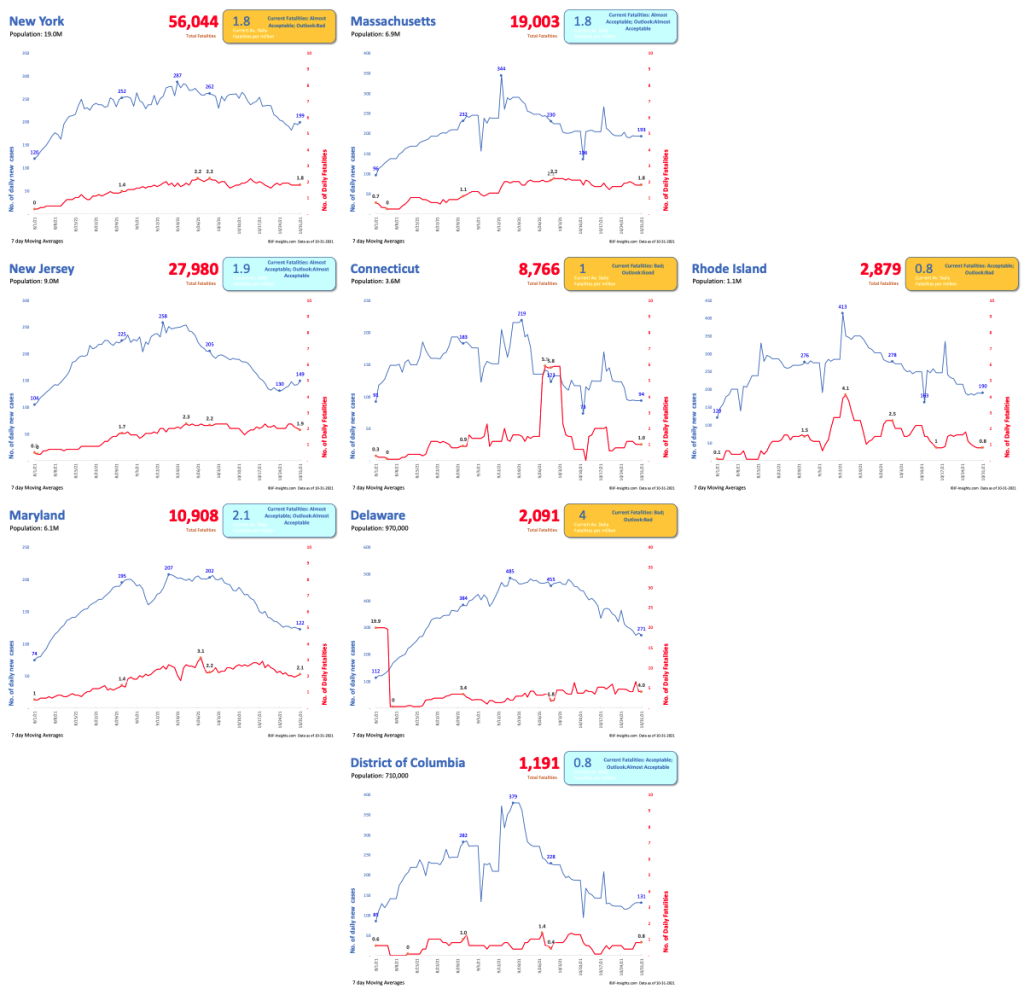 The 3 best states (or equivalent) in the US – are Washington DC; Massachusetts; Connecticut. Basically the bunch below – are doing a very good job keeping cases and fatalities down.