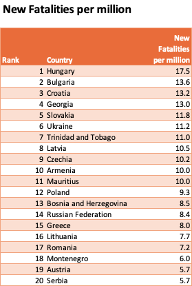 Delta is still driving the majority of cases and fatalities with Eastern Europe most affected. Hungary continues in #1 spot recording its 4th highest monthly total of deaths in November since COVID began.