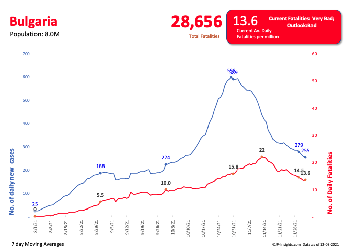 Bulgaria appears to be coming out of the current crisis albeit with currently very high fatality rates