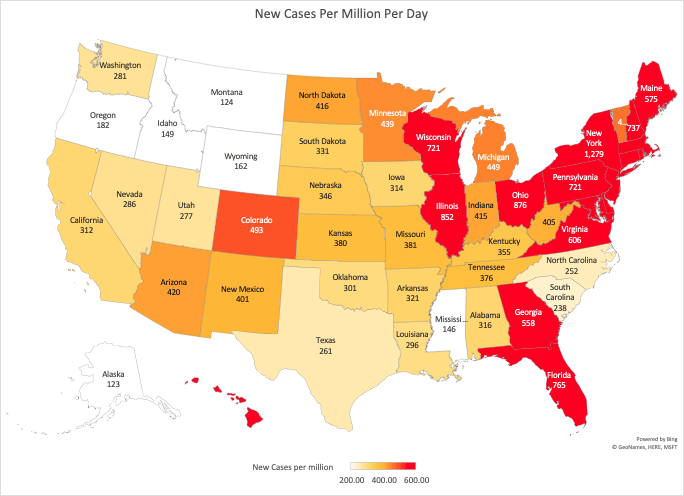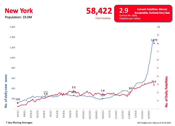 NY cases have risen sharply. Fatalities appear to be stable – but we do not have a full month of data for December yet. Expect fatalities in Dec to be at least 50% higher than the prior 3 month average: