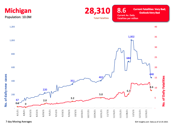 But zoom out to the monthly trend – and this looks like a health care system under pressure. This could well be one of the deadliest months for Michigan.