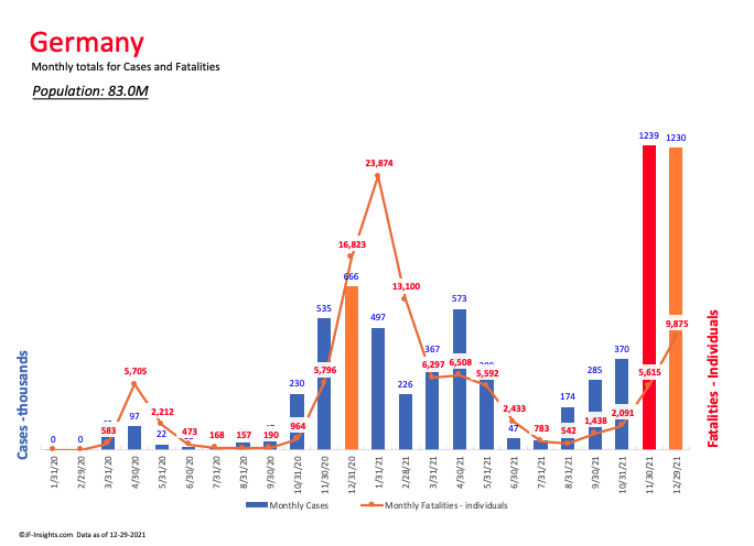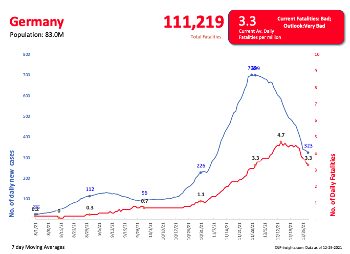- Germany appears to have bent the curve but fatality levels are still high; in fact the highest in the vaccination era.