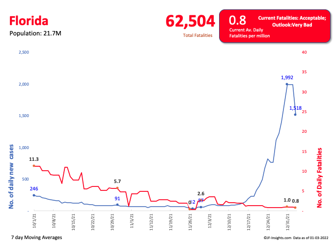 California, as noted previously has managed to keep fatalities down through Delta – but probably too early to call re Omicron.