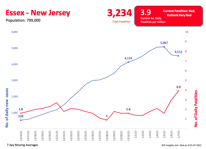 A similar story is playing out in NJ. Here is the results for Essex County, NJ – over 4,000 new positive cases, per million, per dayy.