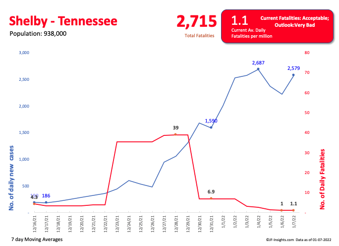 Tennessee is not quite as bad – just yet. Shelby County is one of the highest (cases are similar to Essex County, NJ):