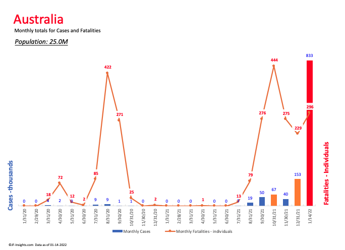 Interesting to note – that initially the Southern Hemisphere (ex South Africa) seemed to have skipped the Omicron surge – well not anymore. A hot topic right now is the Australia Tennis competiton – and the status of Novak Djokovic. Well that country is SURGING right now: