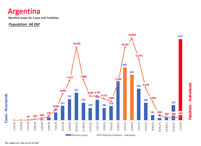 We get a similar situation in Argentina although, as we see from the chart, Argentina has been less successful overall in controlling prior COVID variants.