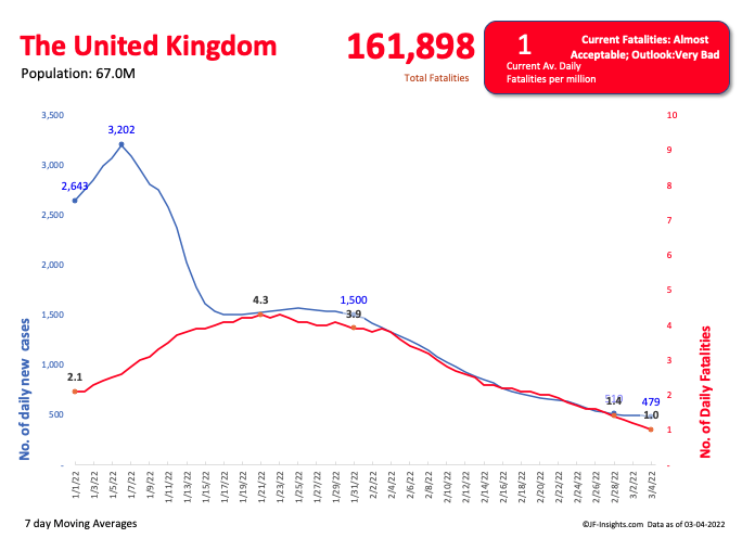 The UK has average daily fatalities down to 1 per million per day. But notice the peak case rate which is much higher than Russia’s official numbers.