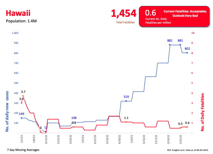 Here it is in table form. At over 800 cases per million per day – Hawaii certainly looks very much off track.