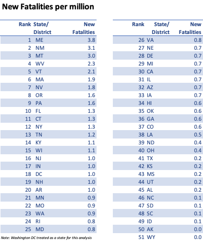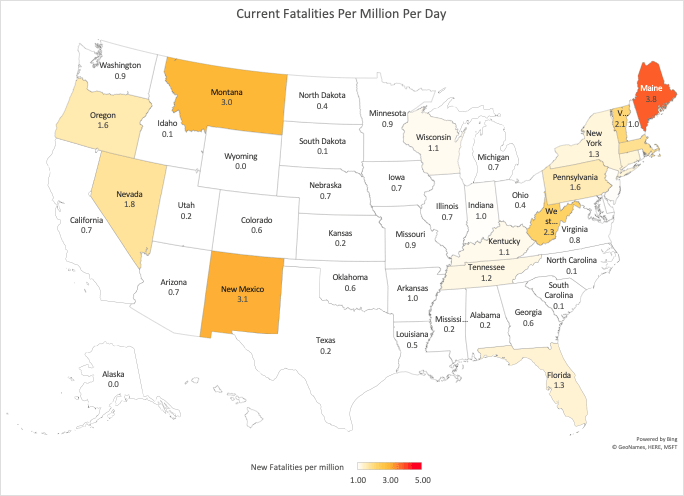Maine, New Mexico and Montana lead current US fatality rates from Covid. .