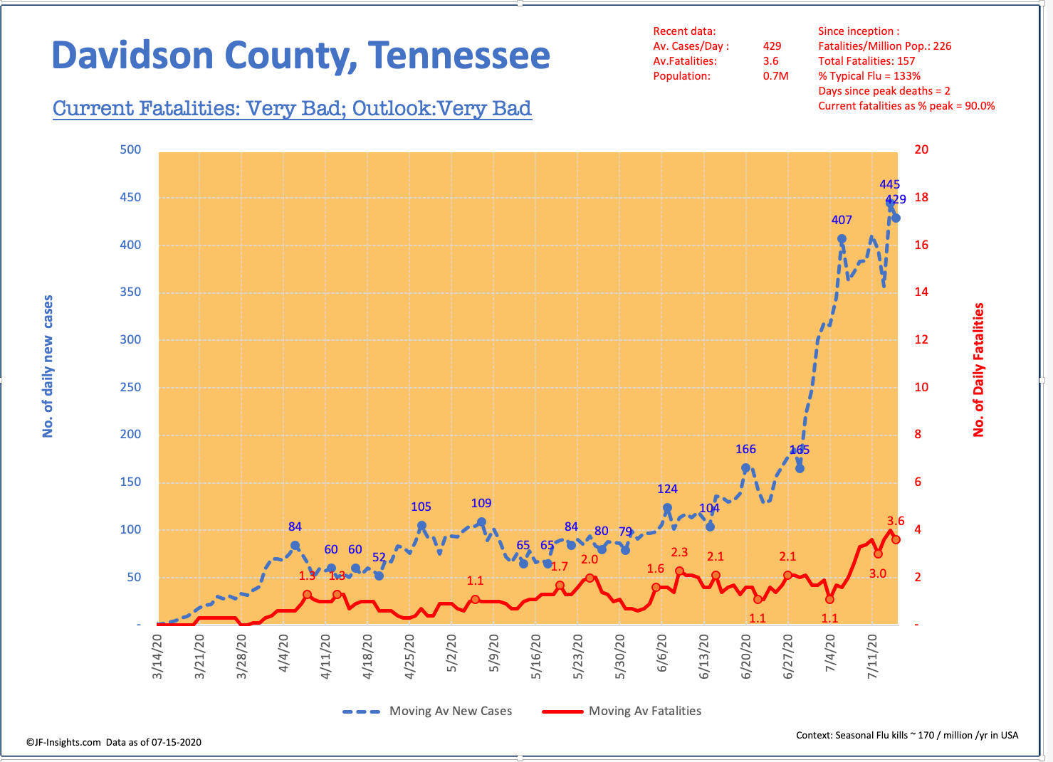 Davidson County is one of the worst counties in America for COVID growth. The data is 53x the level that caused the first lockdown.