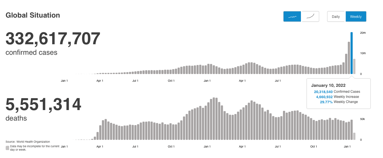 The global march of Omicron is still going – check out the case numbers reported on the WHO website. 2022 is showing a truly unprecedented level of cases. World wide over 22 million cases recorded in the week running up to Jan 17th. Thankfully the fatality curve has not followed suit. The US has peakedContinueContinue reading “US Peaks on cases but not yet fatalities”